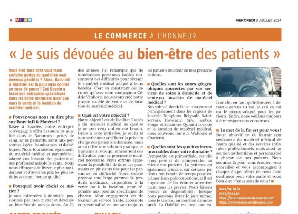 Faites confiance à Bauv’infi pour des soins de proximité avec une touche humaine et professionnelle !